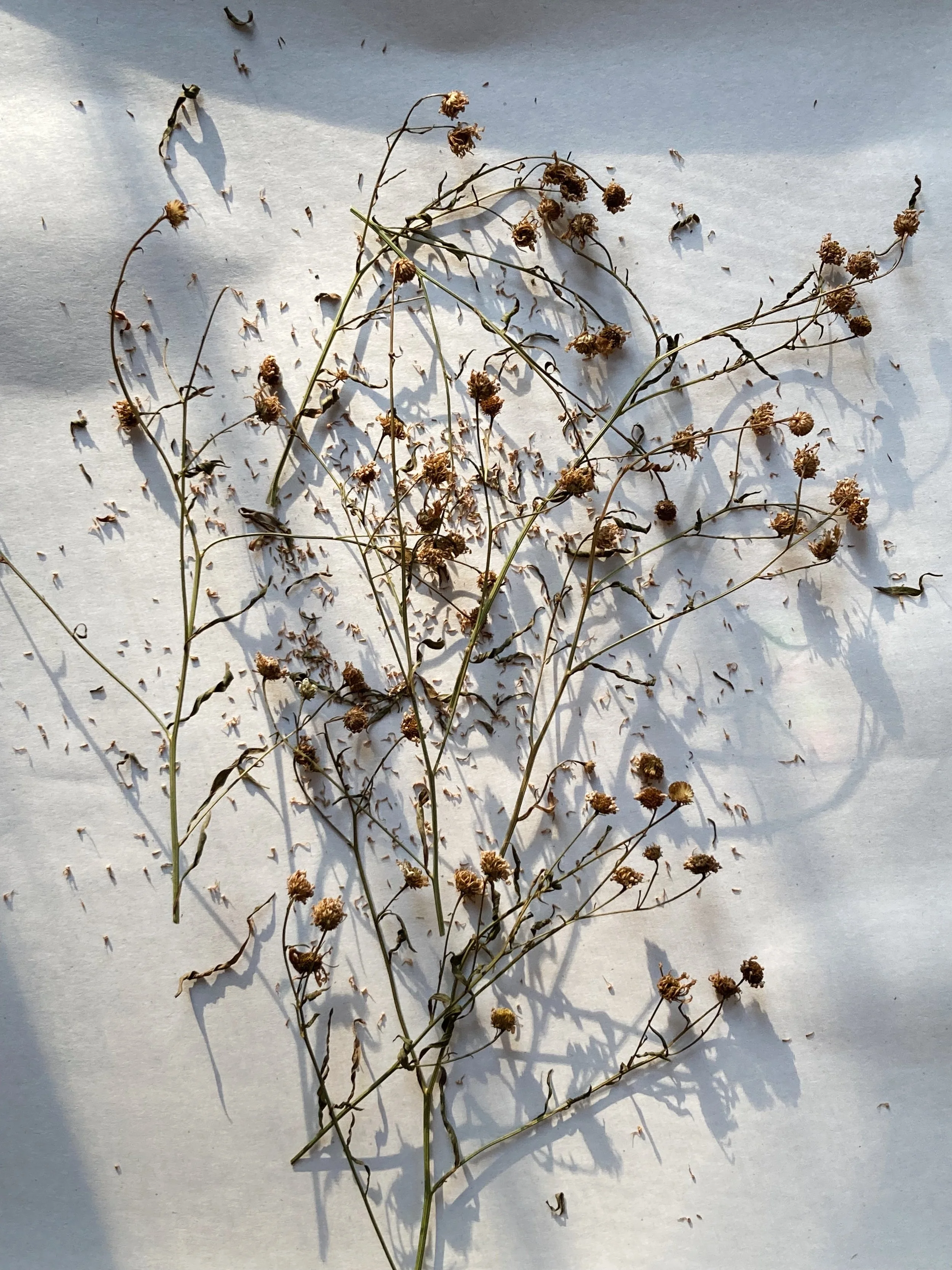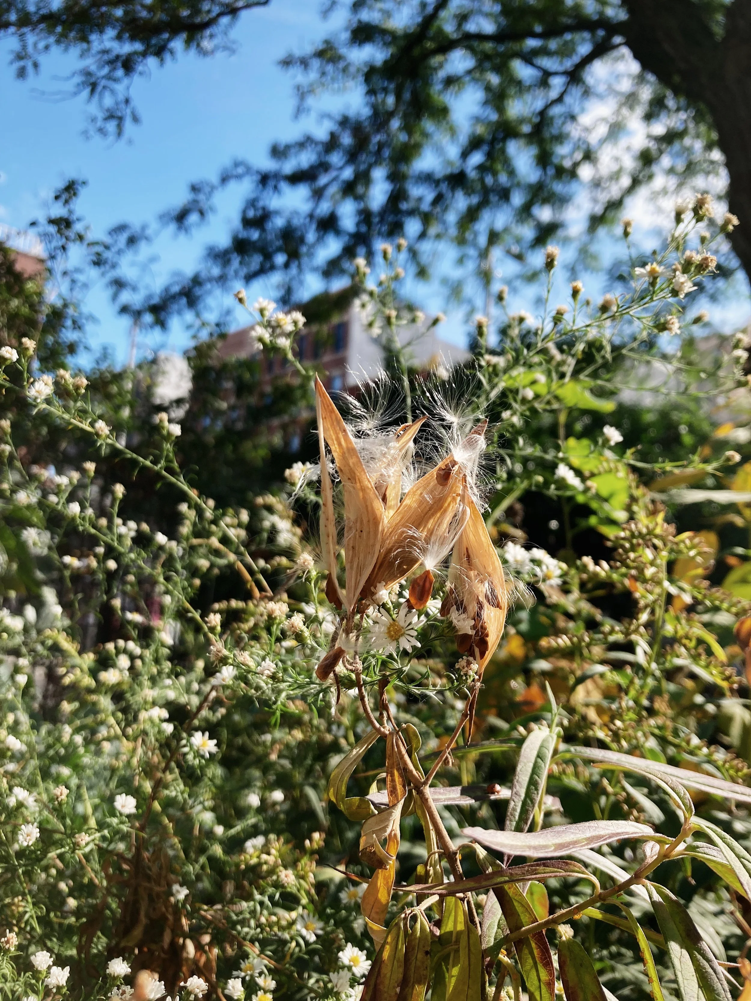 The garden beds are full of seedheads as autumn approaches. This year, more than ever, I’ve been feeling called to collect and organize them in an intentional way. I’d love to do even more winter sowing this season with hopes of sharing more native plants with our garden community next year. Below, the seeds of the swamp milkweed (Asclepias incarnata), the rattlesnake master (Eryngium yuccifolium), the hairy white oldfield aster and the aromatic aster, alongside the last of the blooms and the ripening rosehips.