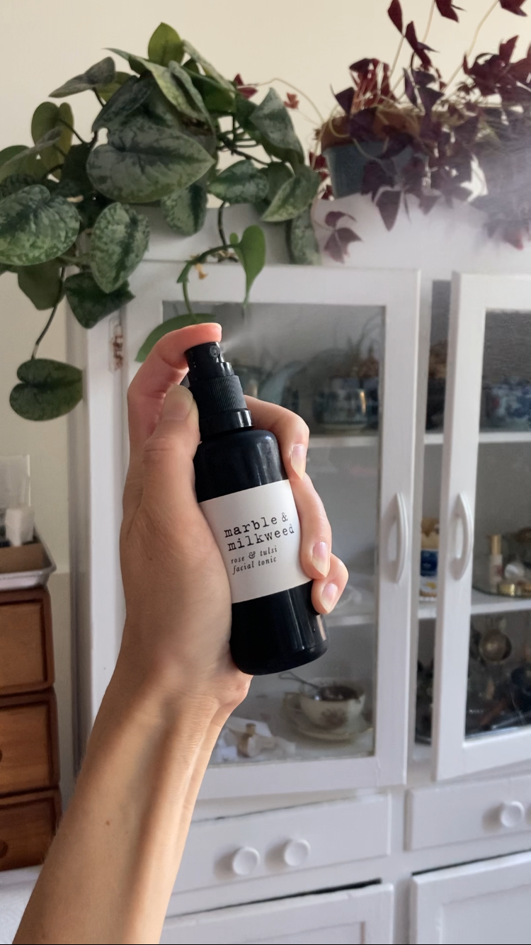 a restorative spritz of our rose & tulsi facial tonic mist, from our summer limited-edition collection