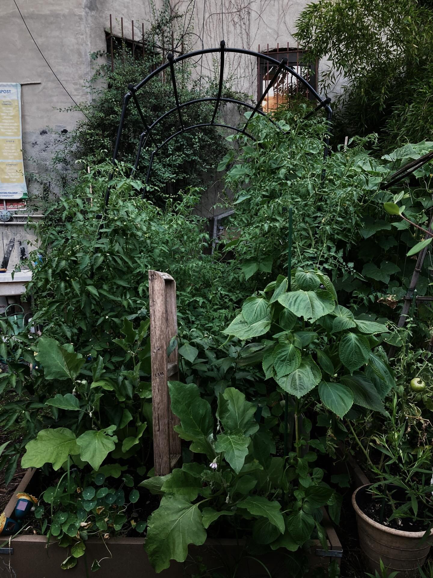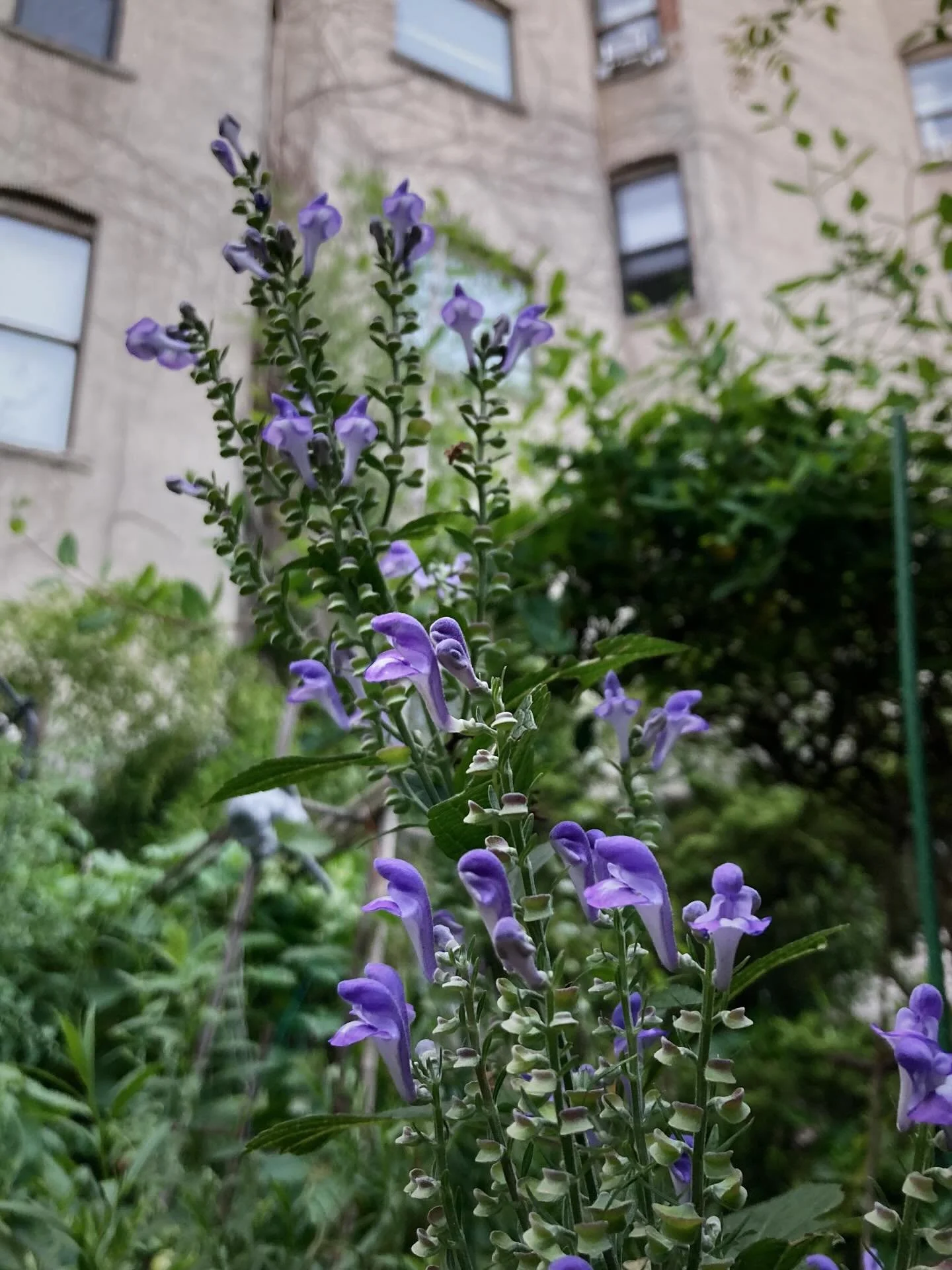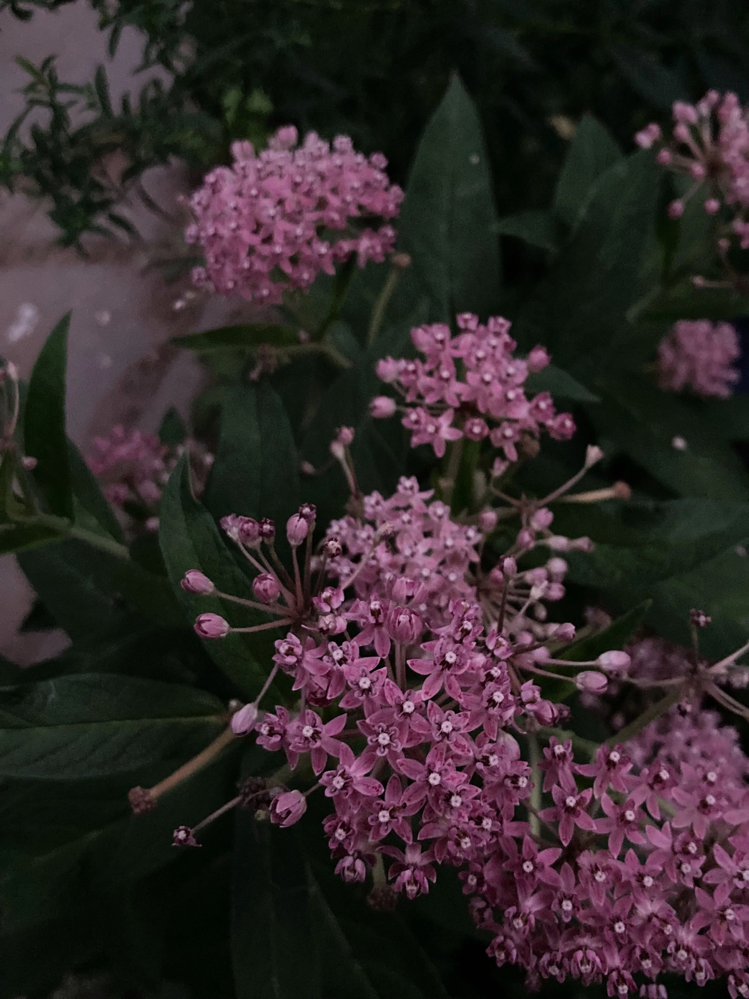 In the late summer garden, the colors are most vivid at dusk, with the pinks and purples of the zinnias, the ironweed and the swamp milkweed starting to give way to the golden sneezeweed and rudbeckias. The trumpet vine, as ever, threatens to consume the stage roof, and the purple of the skullcap (Scutellaria incana) absolutely glows in the fading light. Lush and bittersweet, all at once.